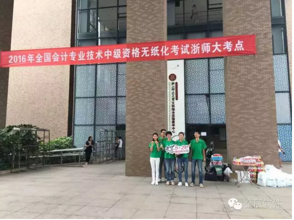 初秋的天氣溫和宜人,2016年全國會計專業(yè)技術(shù)中級資格考試今天開始啦!浙江師范大學(xué)考點的考生們陸續(xù)趕到考場,準(zhǔn)備開始今天的考試。金華金辰軟件有限公司的小伙伴們已經(jīng)早早的在浙師大考點,為每位考生加油!